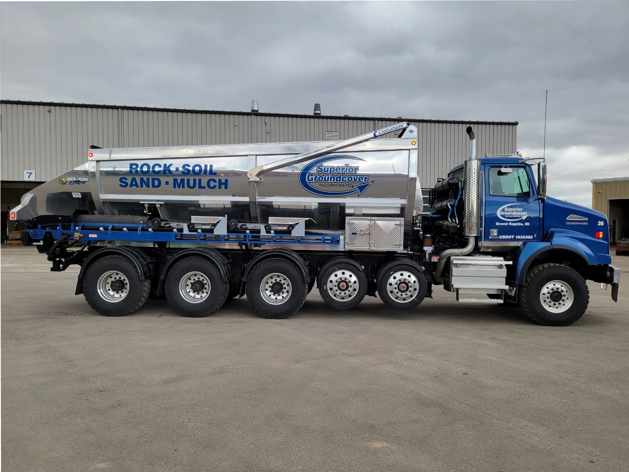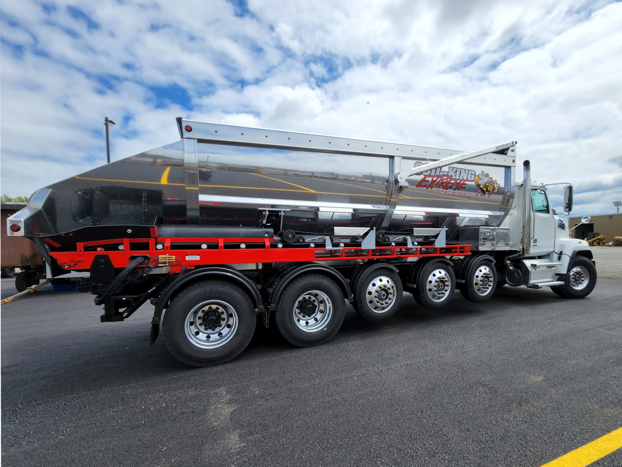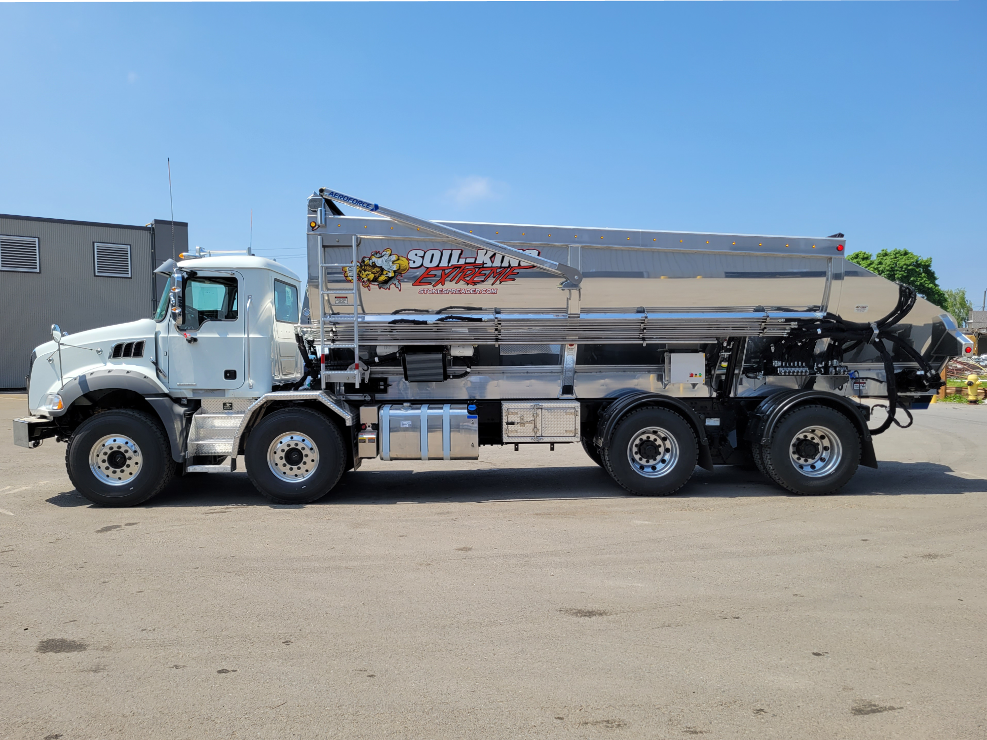 This one-of-a-kind machine is the ultimate additional to any fleet. The Extreme is safe, versatile and durable, qualities which are unmatched in the stone spreading industry, helping you get the job done safer and more efficiently than any other spreader on the market.